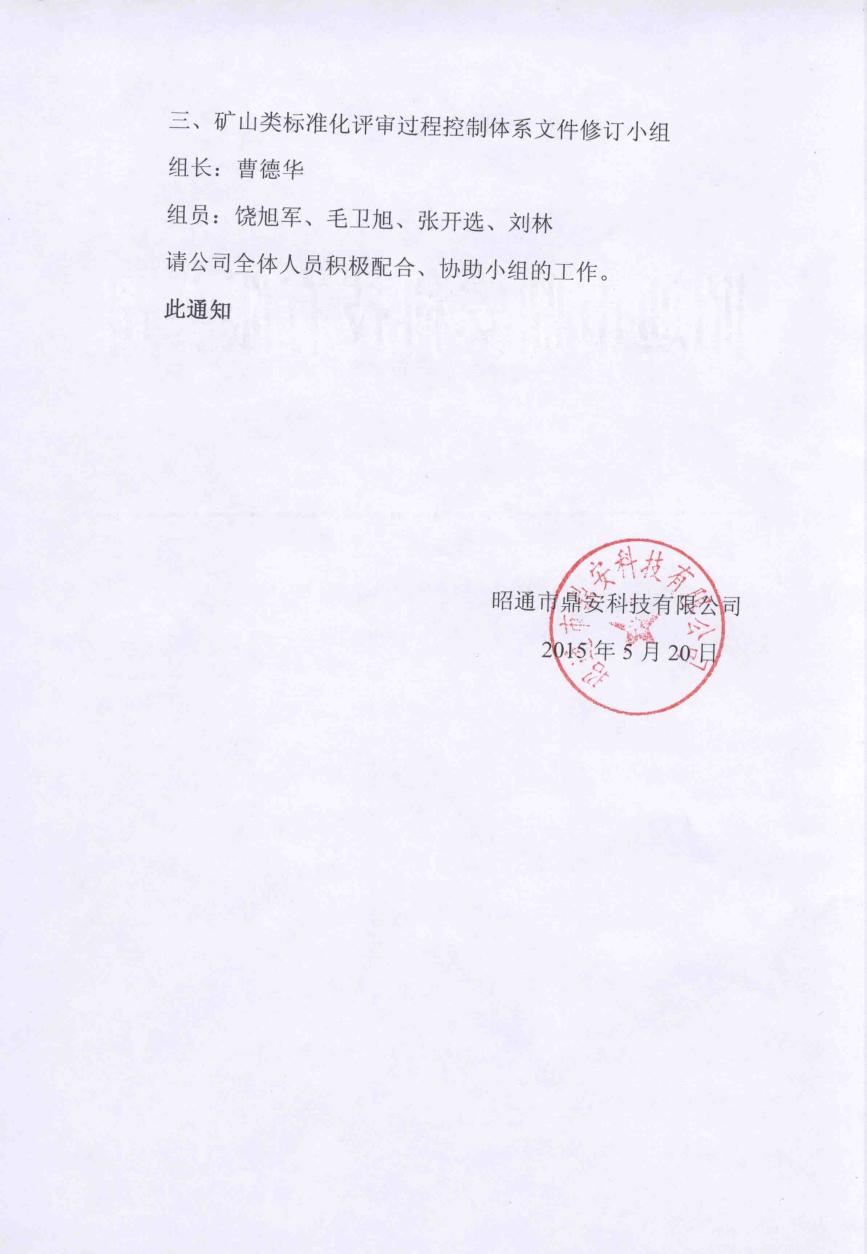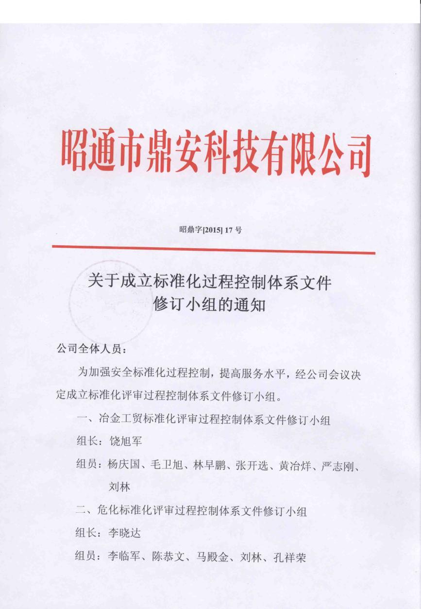 關(guān)于成立標(biāo)準(zhǔn)化過程控制體系文件修訂小組的通知